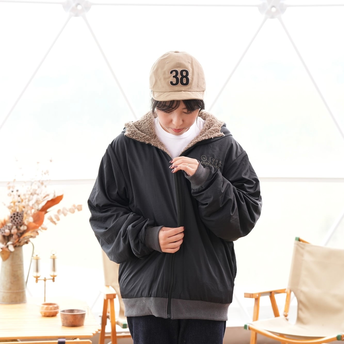 ポップな配色かつ、アウターとしても着やすいカラーリングで両面とも使いやすくなっています。